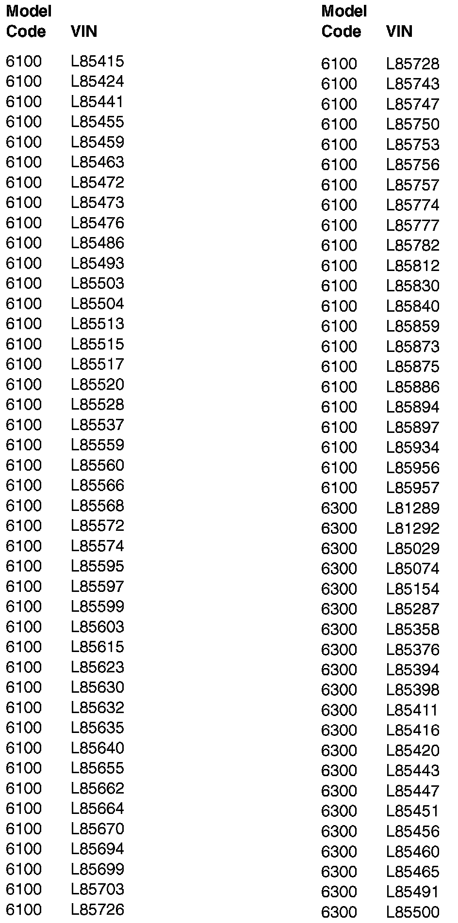 PROCEDURE FOR VEHICLES VIN L7366510 L78262