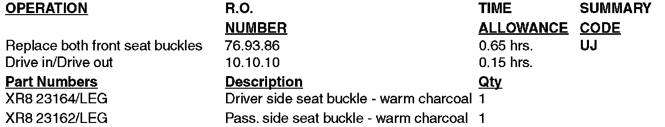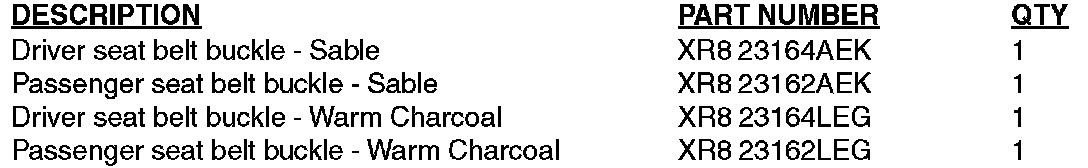 A partial allotment of replacement seat belt buckles will be shipped directly to you based on the color/trim specification of the vehicles allocated to your dealership within the specified VIN range. After you receive this initial shipment, you may order additional quantities required through normal channels.