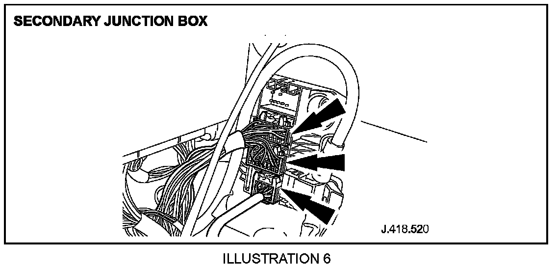 3.1 Check that all connections at secondary junction box are pushed fully home and are not damaged i.e. bent/backed-out (Illustration 6). Where available, utilize opposing pins from the harness repair kit and insert into populated pins to ensure a good/tight fit is achieved.