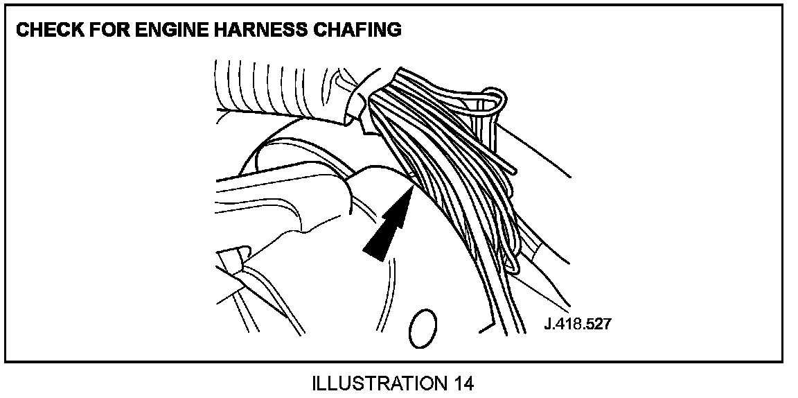 4.2 Check for chafing of the engine harness on the injector pressure sensor bracket, as shown in Illustration 14.