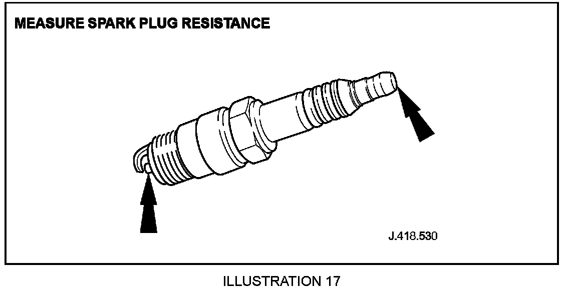 4.5 Measure spark plug resistance between the spark electrode and the coil end of the plug, using a standard ohmmeter (Illustration 17).