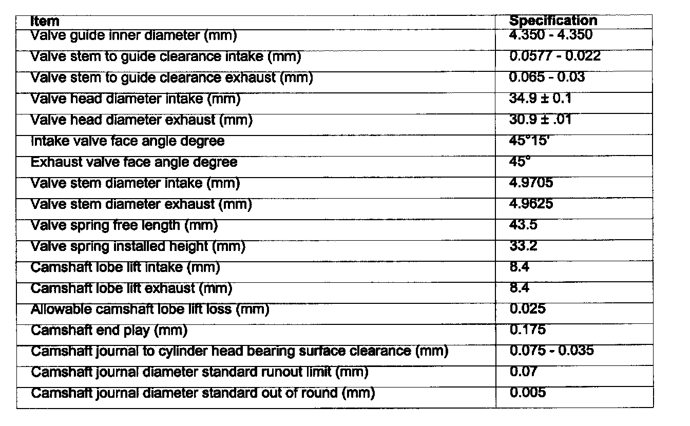 Cylinder Head Assembly: Specifications