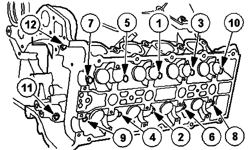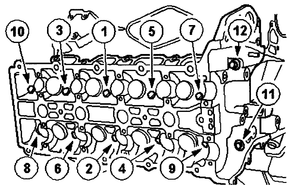 NOTE: Tighten the bolts 1 through 10 in the indicated sequence. New head bolts and washers must be used.