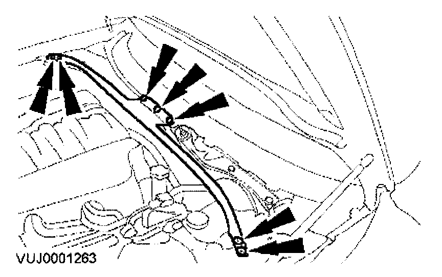 12. Lower the vehicle and remove the heater hose assembly