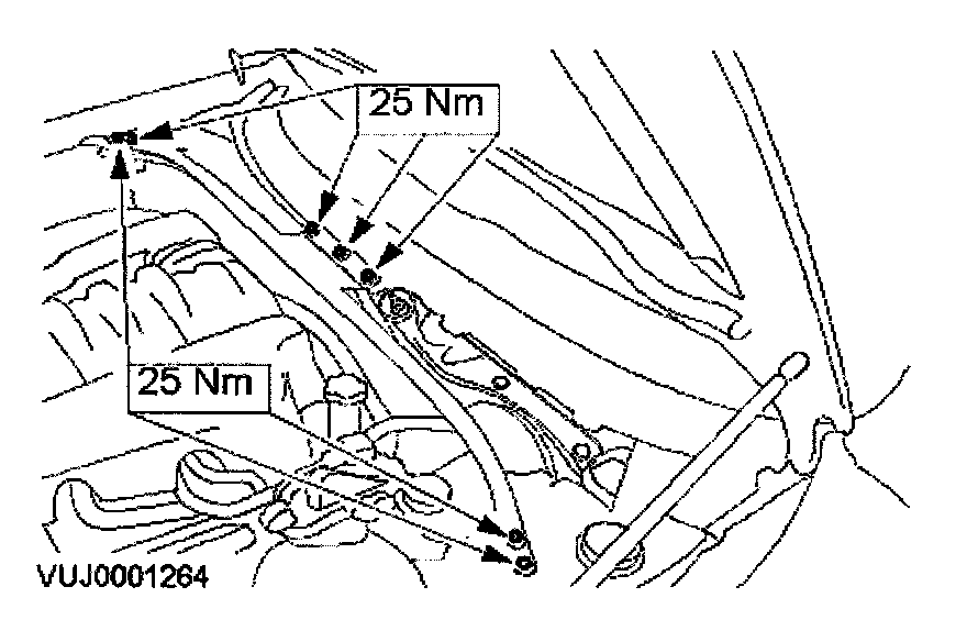 5. Remove the engine compartment brace.