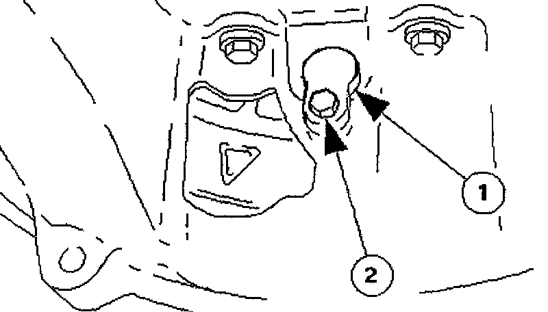- Remove bolt [1], which secures the crankshaft position sensor to the flywheel housing. Remove sensor and allow it to hang free under the engine.