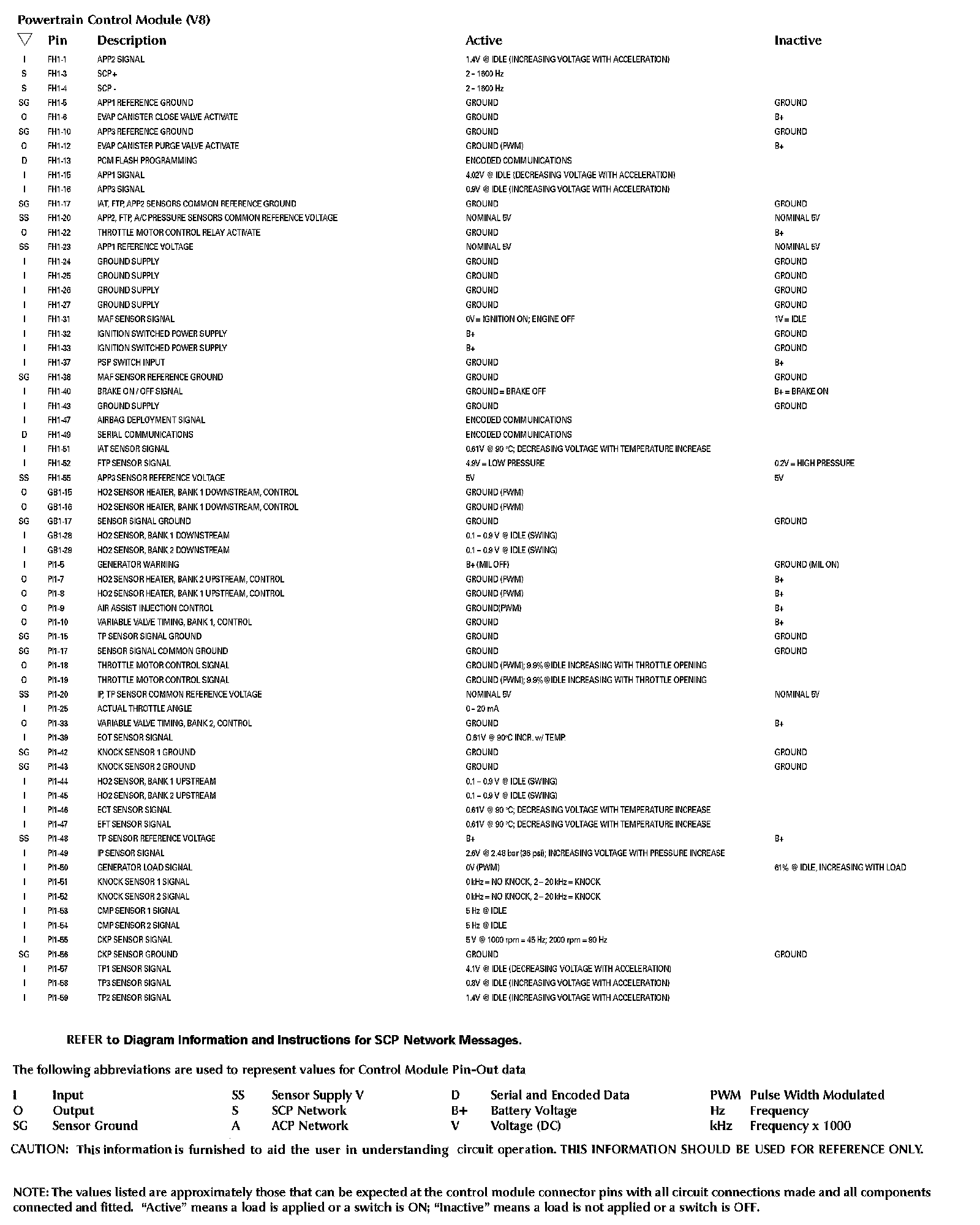 Control Module Pin-Out Information: