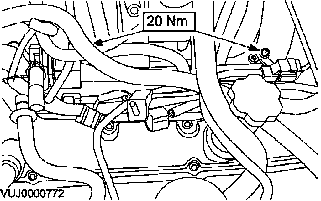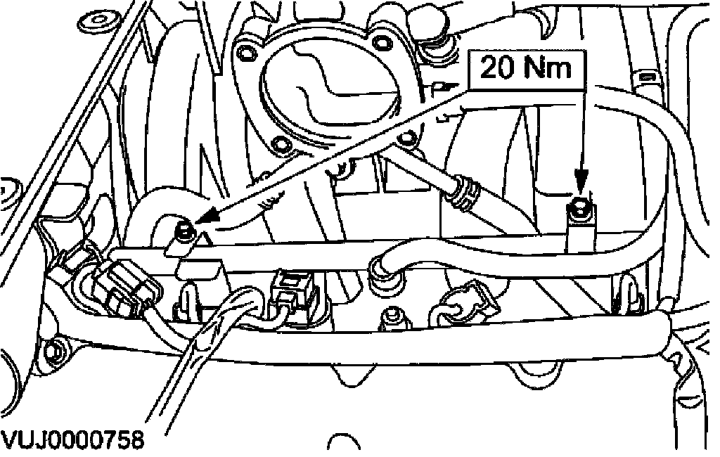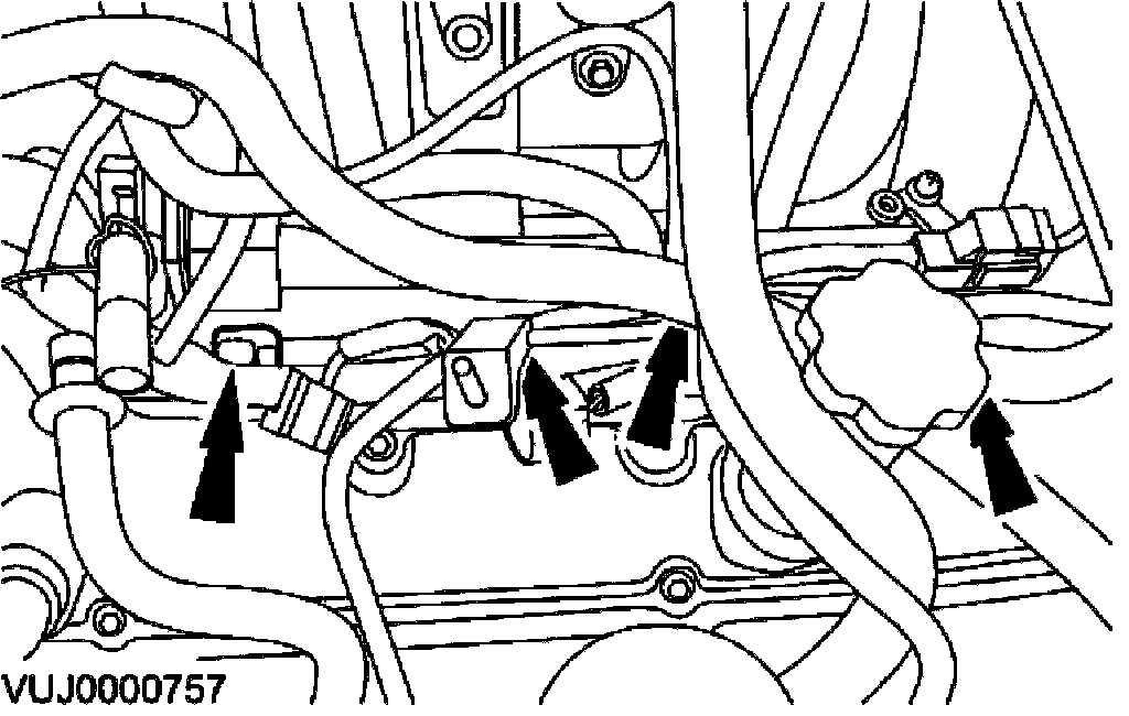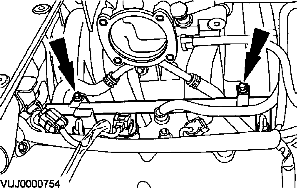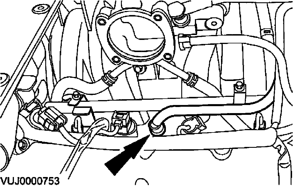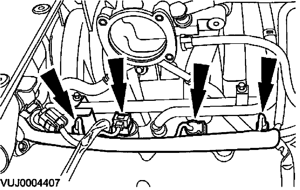 3. Detach the camshaft position sensor electrical connector from the fuel rail.