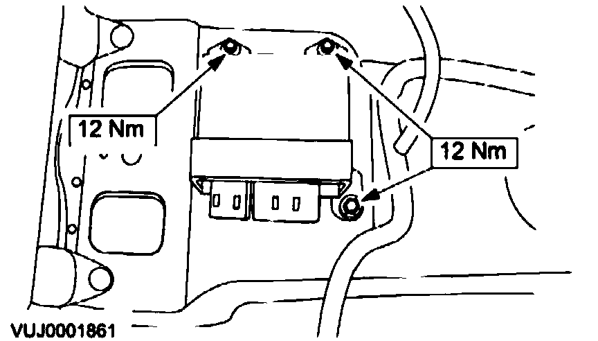 1. WARNING: The tightening torque of the air bag electronic crash sensor (ECS) module retaining bolts is critical for correct system operation and safety.