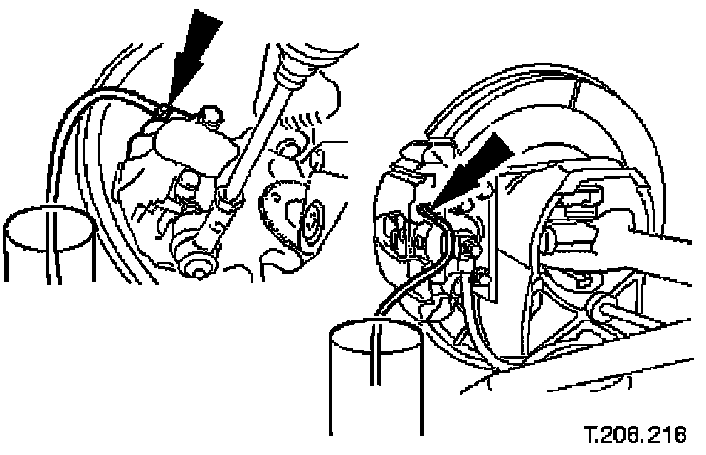 ^ Connect a bleed tube and container to the calipers.