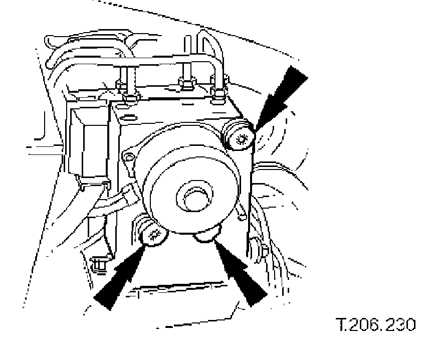 ^ Taking care not to distort brake tubes remove HCU.