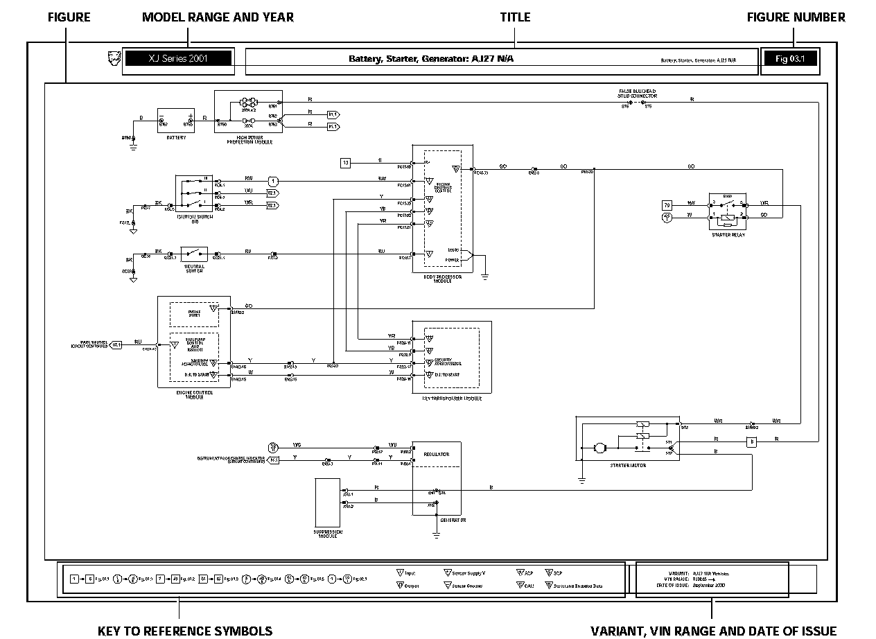 Each Figure represents a specific electrical system of the vehicle. The Figures are arranged numerically by system (01 - Power Distribution, 02 - Ground Distribution, etc.) with variations in the system identified by a numeral following a decimal point (01.1, 01.2, etc.). Refer to Diagrams / Electrical for a Component Index and the Diagrams By Figure Number. The Component Index contains a list of all the electrical components and on which diagram(s) the component can be found. Diagrams By Figure Number contains a complete list of all the diagram figures. Electrical Diagrams