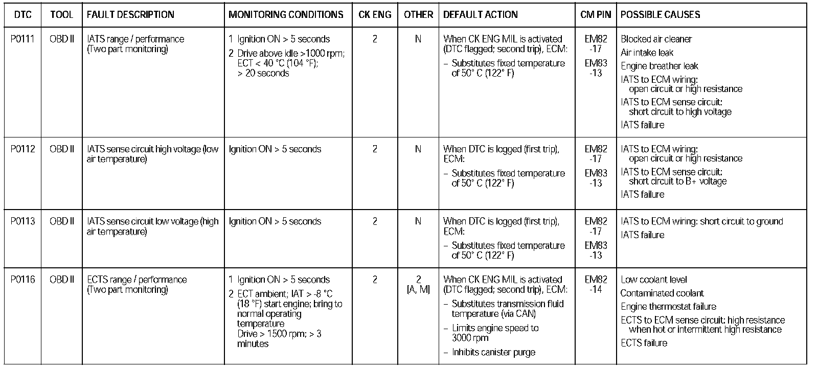 DTC P0111 - P0116:
