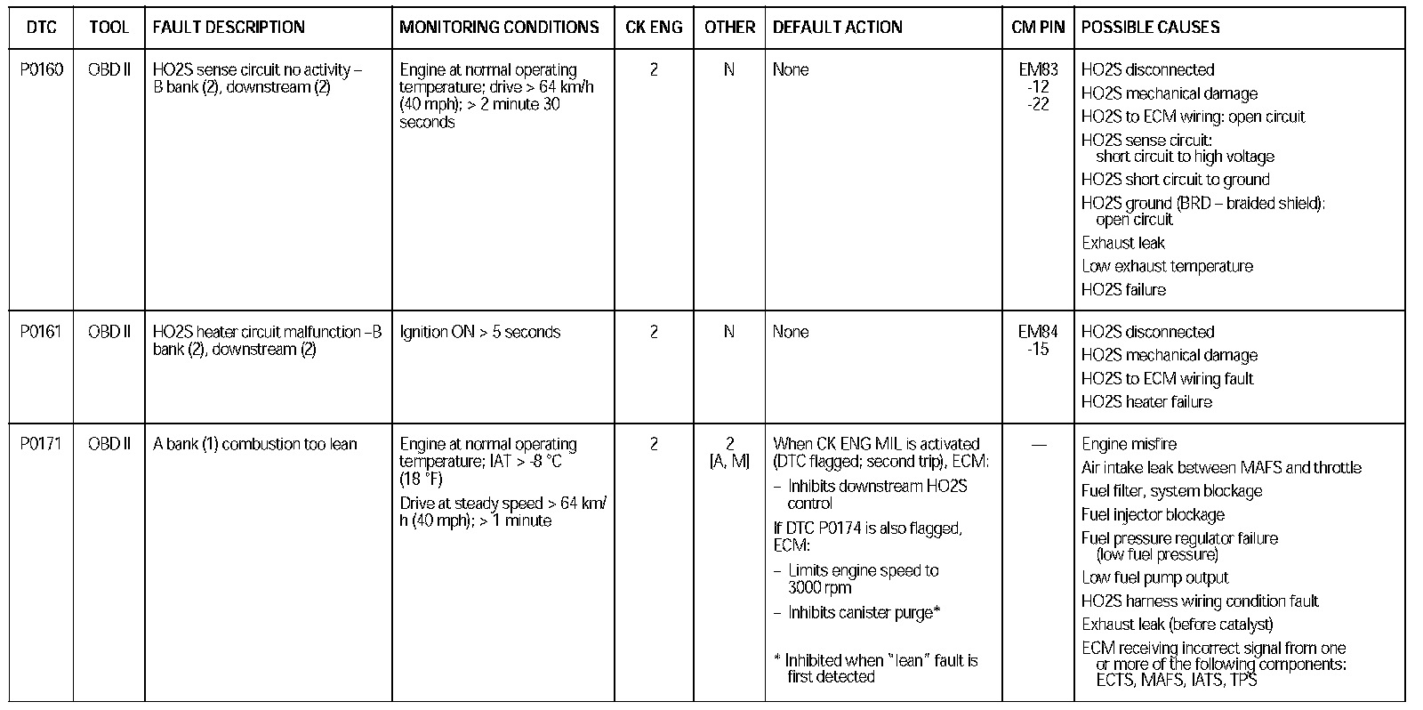 DTC P0160 - P0171: