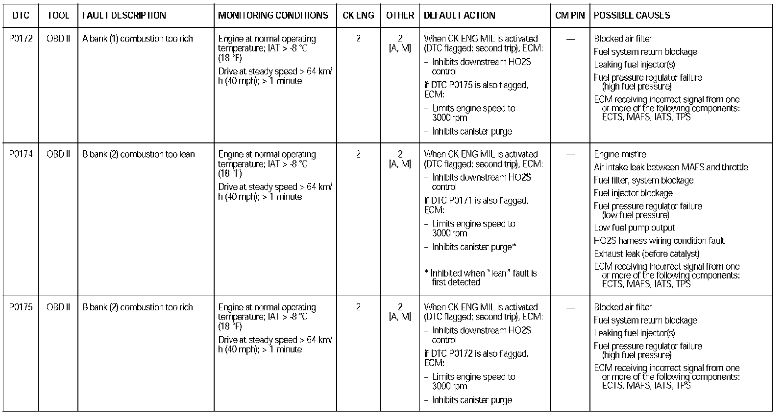 DTC P0172 - P0175: