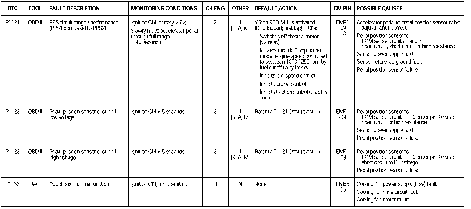 DTC P1121 - P1136: