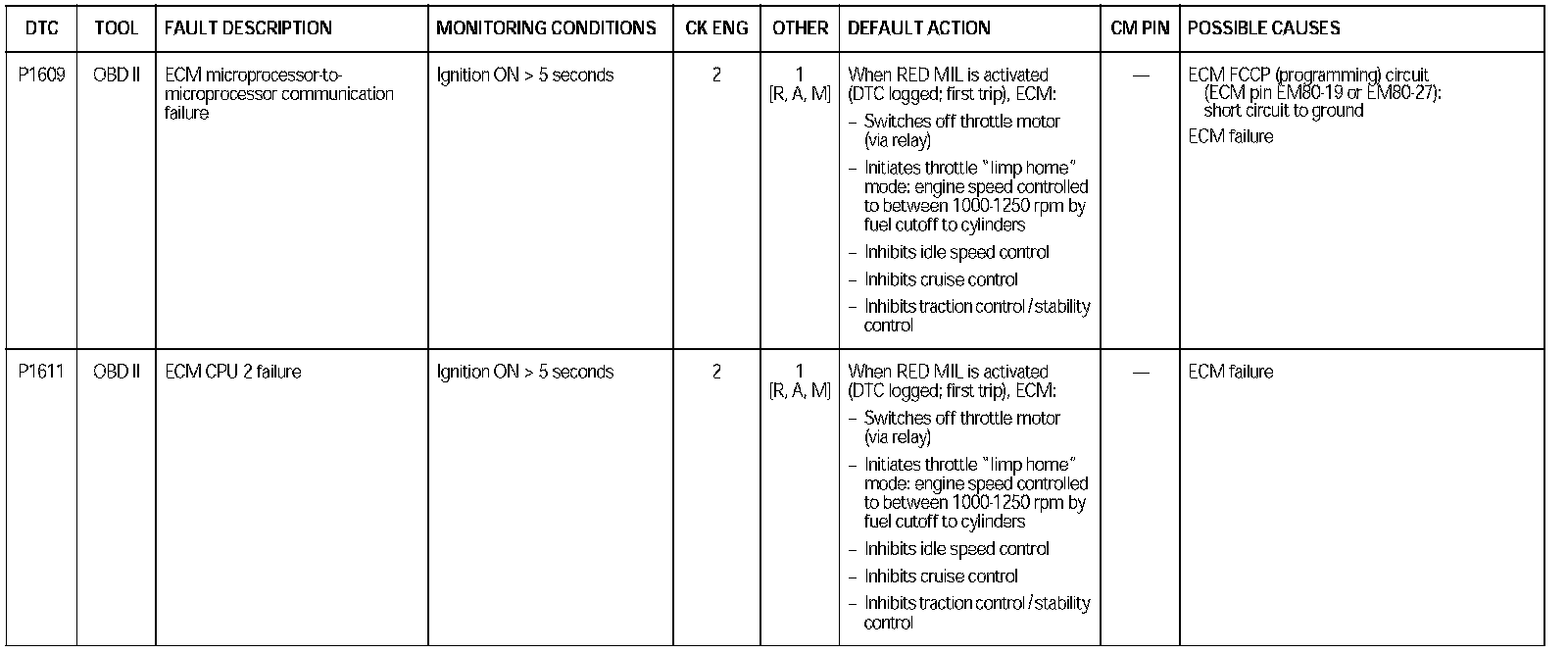 DTC P1609 - P1611: