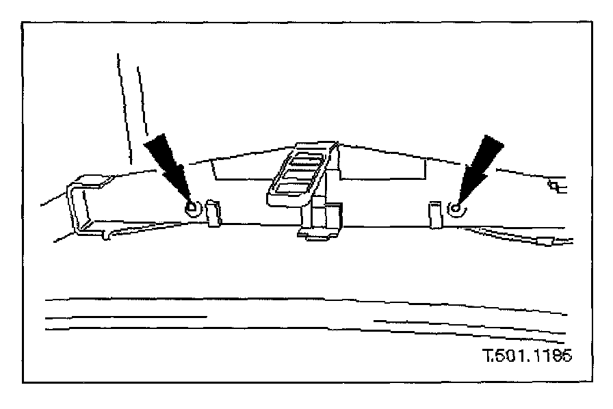 4. Remove covers from trunk latch finisher securing bolts, slacken and remove bolts and remove finisher.