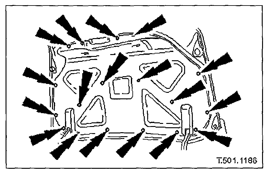 5. Remove and discard the eighteen trunk lid liner fasteners and remove liner from vehicle.