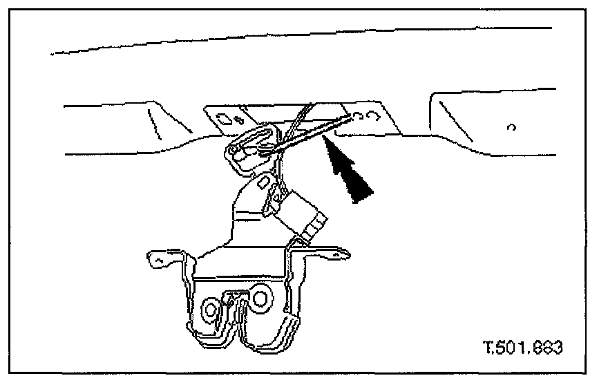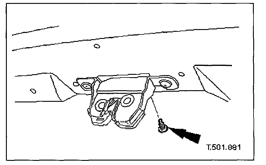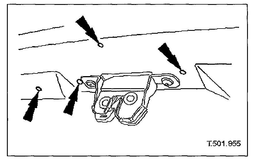 2. Remove covers from the two trunk latch finisher securing bolts and slacken and remove securing bolts.