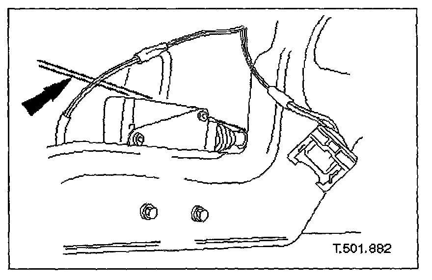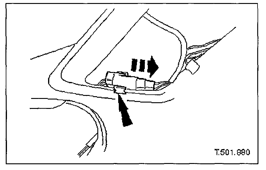 5. Release trunk open switch multiplug from retaining clip and disconnect multiplug.