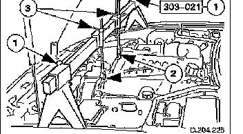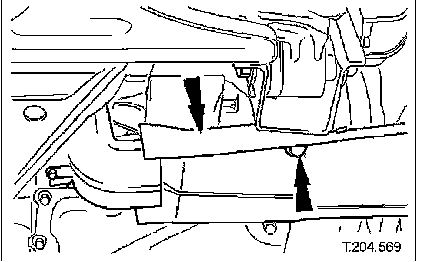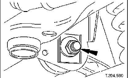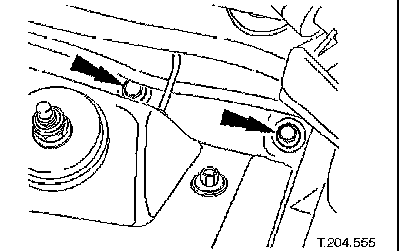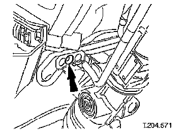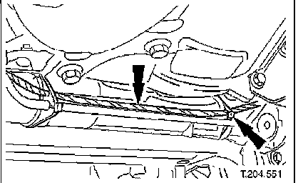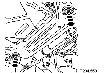 ^ Remove securing bolt from crossbeam LH rear mounting.