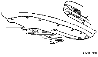 9. Remove scrivets or screws securing undertray to bumper cover. Discard scrivets.