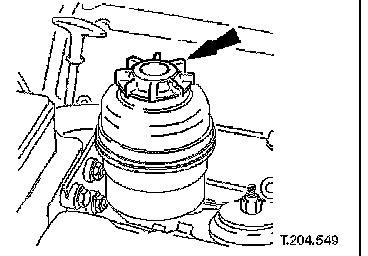 17. Remove filler cap from power steering fluid reservoir.