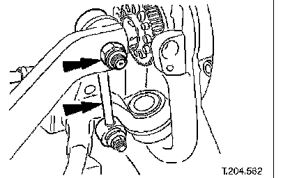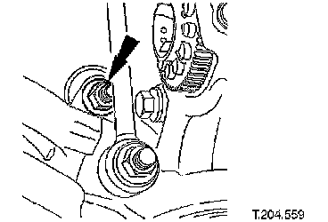 1. Remove lower wishbone front arm eccentric bolt securing nut.