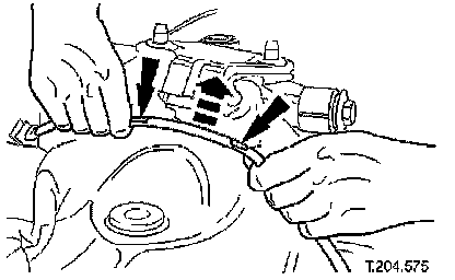 ^ Supporting hub assembly, withdraw lower wishbone eccentric bolts.