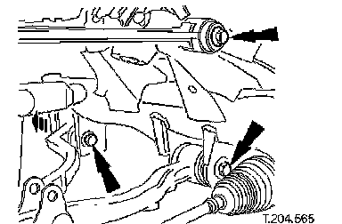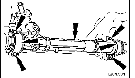 1. Remove steering rack securing bolts.