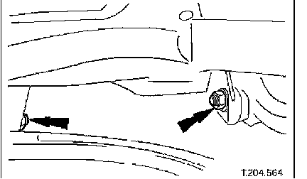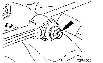 2. Remove lower wishbone rear arm eccentric bolt securing nut.