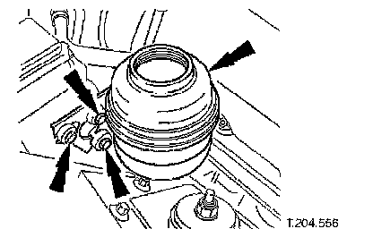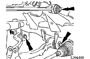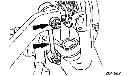 ^ Supporting hub assembly, withdraw lower wishbone eccentric bolts.