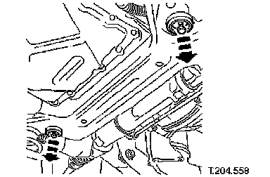 ^ Repeat procedure to remove bolt from crossbeam RH rear mounting.