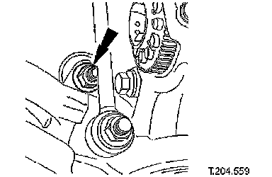 1. Remove lower wishbone front arm eccentric bolt securing nut.