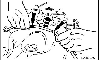 4. Remove caliper from carrier and tie to suspension mounting bracket.