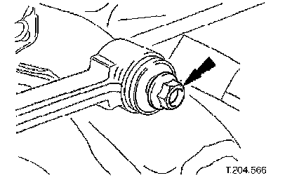 2. Remove lower wishbone rear arm eccentric bolt securing nut.
