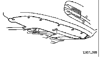 11. Remove screws or scrivets securing undertray to bumper cover. Discard scrivets.
