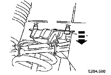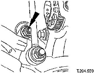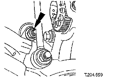 ^ Slacken crossbeam LH rear mounting nut.