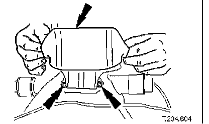 ^ Ensure that dowels of both crossbeam mountings are correctly seated in body locations.