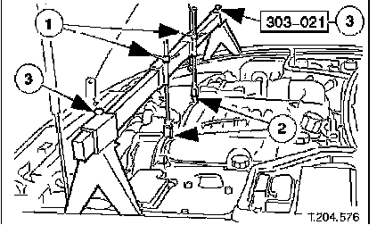 1. Slacken hook adjustment nuts until weight of engine is released.