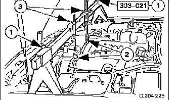 1. Position special tool 303-021 in RH and LH fender channels and tighten beam fixings.