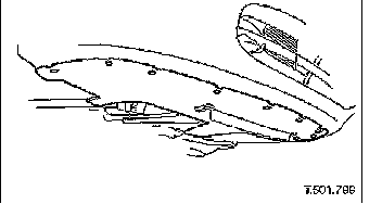 11. Remove screws or scrivets securing undertray to bumper cover. Discard scrivets.