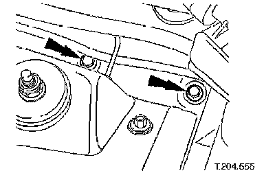 7. From engine compartment, tighten crossbeam front RH bolts to 22-28 Nm.