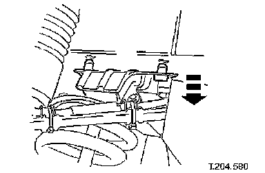 Slowly lower the crossbeam just sufficient to provide the required clearance. Lowering the crossbeam excessively can damage the suspension and steering pipes.