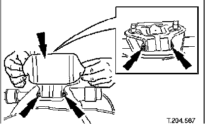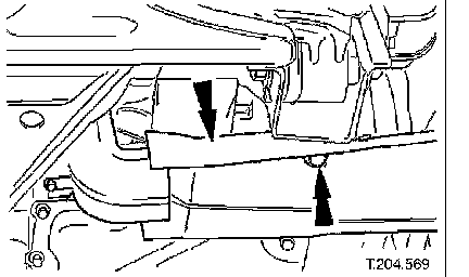 ^ Ensure that dowels of both crossbeam mountings are correctly seated in body locations.