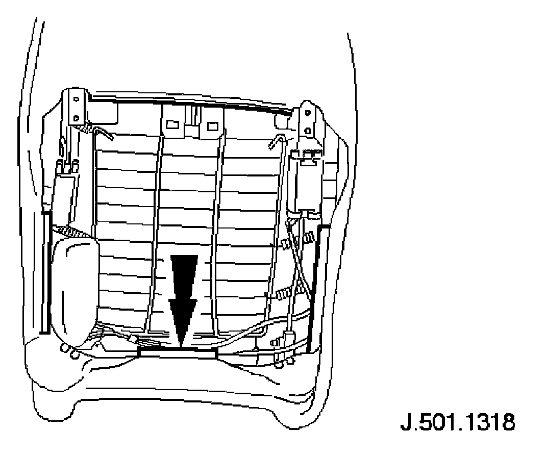 9. Fit seat cover LH side to seat frame and fully seat securing clips.