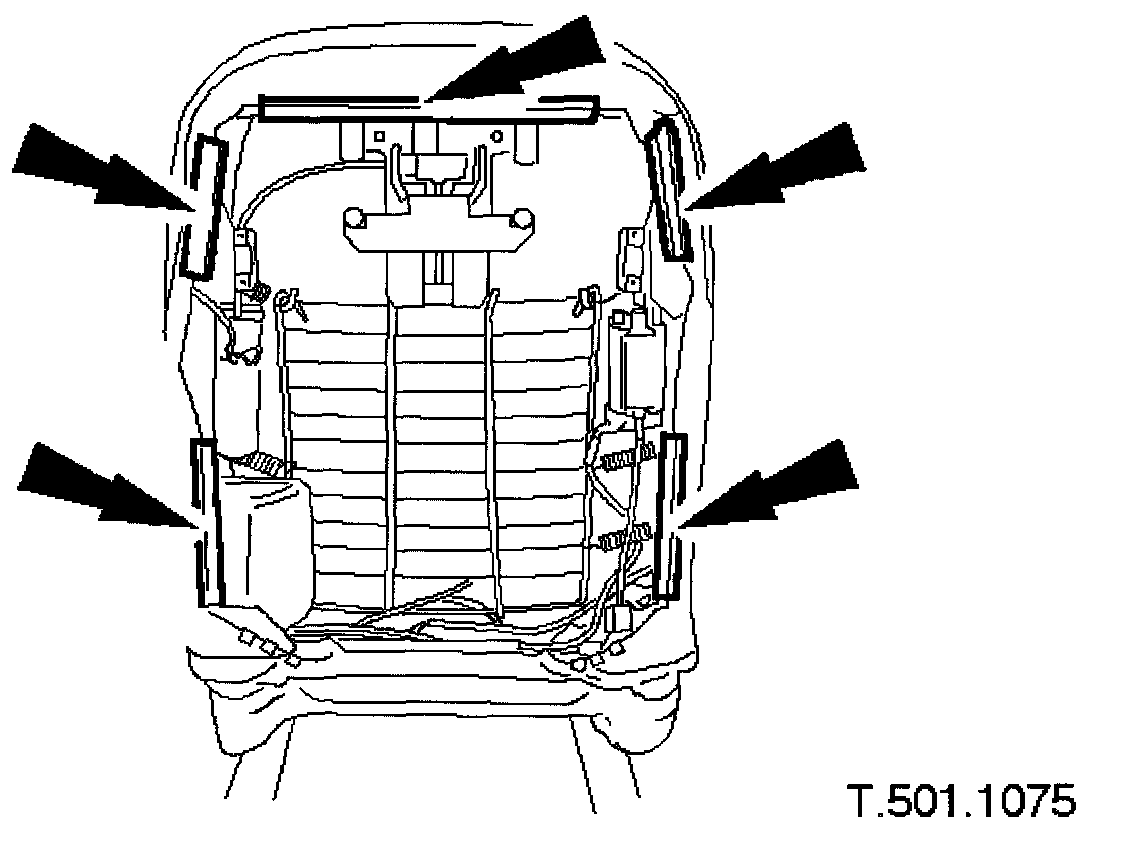 10. Release seat headrest guides from seat frame and remove squab cover and pad.