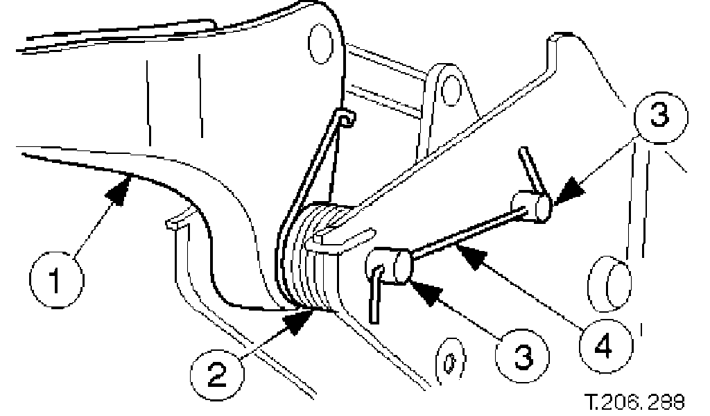 4. Install retaining wire: bend ends of wire to secure pivot pins.