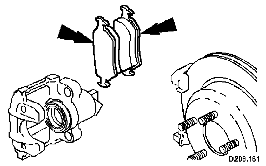 CAUTION: The brake pad adhesive backing must not be reused, therefore always install new brake pads, irrespective of the condition of the original pads when replacing a brake caliper. Always replace brake pads as an axle set.